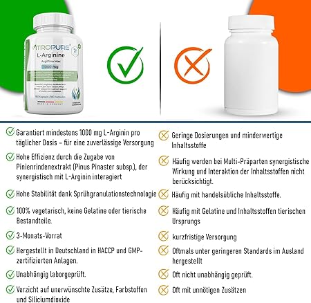 - Mindestens 1000 mg L-Arginin pro Tagesdosis